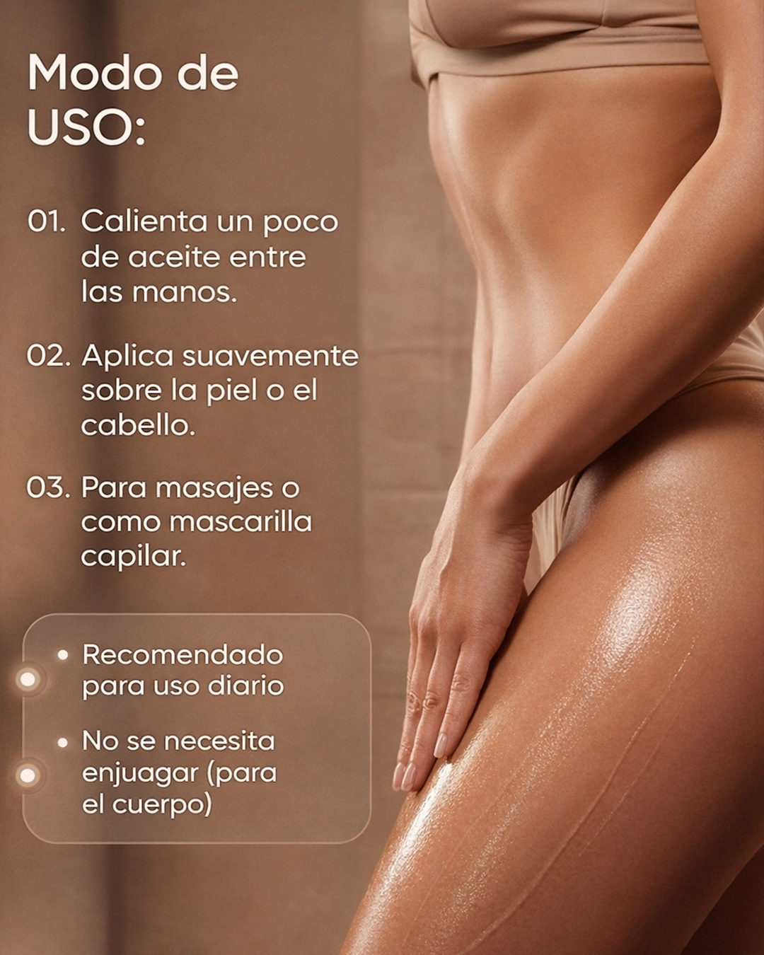 - 🧴 Foco Belleza: Excelente para hidratación de piel, cabello y uso corporal.